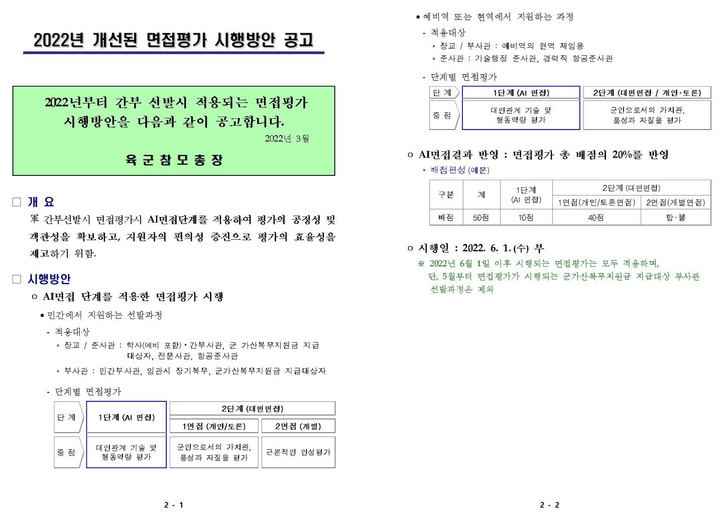 2022년 개선된 면접평가 시행방안